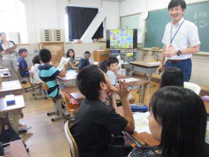 これからの総合的な学習の時間『ドリーム』で,福祉施設の体験をする学習が始まります。今日は亀岡の福祉施設で働いておられる職員の方に来ていただき,高齢化社会についてやお年寄りの方の特徴などについてお話を伺いました。また,どんなふうに介助したらよいか,介助される方はどんな気持ちになるかを,実際にやってみて,考えることができました。