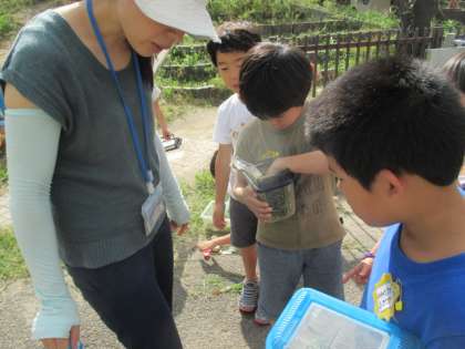 前回つかまえた秋の虫の家やえさをしっかり整えました。「草をいっぱい入れたらいいかな?」「何を食べるのかな?」班で話し合いながら学習を進めることができました。