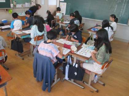 モード先生の授業です。Go straight・Turn right・Turn leftの表現を使って,道案内をしました。 すっかり使いこなすことができました。