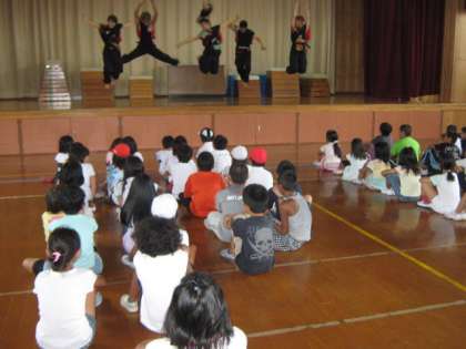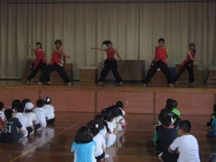 25日は,6人の大学生の方が出前授業に来て下さいました。大学生のお兄さん お姉さんのかっこいい踊りに見とれてしましました。