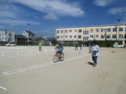 下鴨警察署の方,また,PTAや地域の方々にお世話になりながら自転車検定をおこないました。自転車の正しい乗り方,交差点の曲がり方など,自分の身の守り方を教えてもらいました。今年は筆記テストもがんばりました。