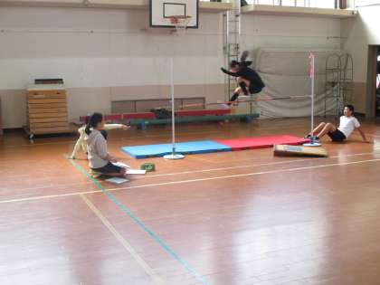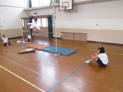 走り高跳びの学習です。4年生の学習を思い出し,記録に挑戦しています。まだ,フォームが固まっていませんが,高く跳ぶために,フォームや助走距離を工夫していきたいと思います。