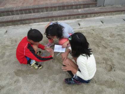 理科の学習で,日なたと日かげの地面の温度をくらべています。大まかなちがいは,前の学習でくらべていますが,今日は,そのちがいを数値で出すために,温度計で調べました。今日は雲が多かったので,大きなちがいは見られませんでした。次回,もう一度天気がいい日を見つけて実験して,結果をまとめたいと思います。