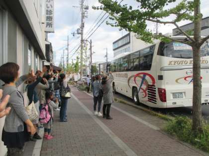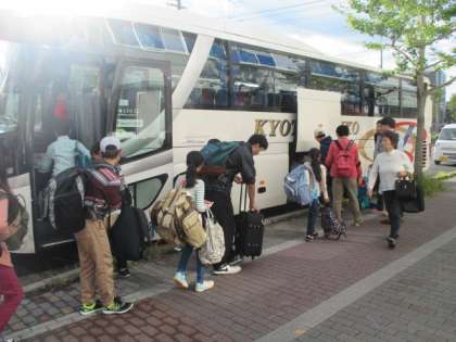 保護者や教職員の見送りの中元気に出発していきました。お家の人と離れるのは少しさみしいかもしれませんが,その分友だちとしっかりと交流をしてほしいと思います。