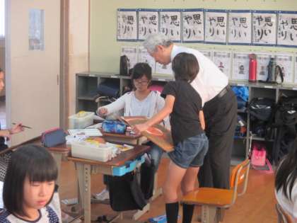 画家の先生に来ていただき,西洋画について教えていただきました。ポイントとして,明暗をつけることと背景を意識することです。普段は,下書きは鉛筆で描くのですが,今日はアクリル絵の具で描きました。はじめはこわごわ描いていたのですが,先生が「失敗してもいいよ,大胆にいこう。」というアドバイスにより,どんどん筆が進んでいきました。すてきな作品がたくさんでき,先生にほめていただきました。