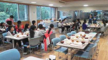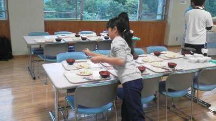 食堂での初めての食事を,美味しくいただきました。登山のための腹ごしらえです。