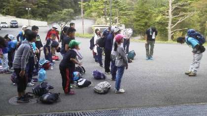 全員無事に下山しました。下りてきた後の冷たいリンゴは格別でした。よくがんばった子どもたちです。