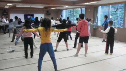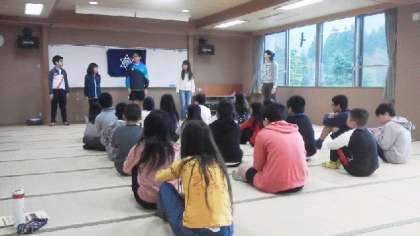3日目の朝を迎えました。昨日の登山の疲れが少し残っているようですが,時間を守って朝の集いができました。保健係による体操で体を起こしました。体操は運動会の全校体操です。