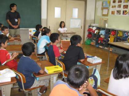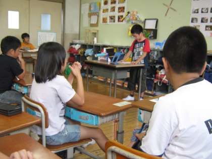 3年生の学級で夏休みの自由研究の発表会をしました。えのき学級からも作品の発表をしました。宇宙船を作ったこと,色紙を張る大きさを考えるのが難しかったことなどを発表しました。大きな声でしっかり発表できました。