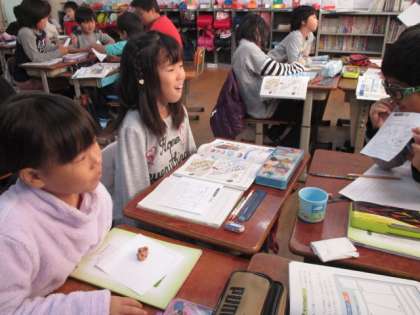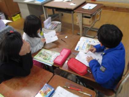 社会では「工場で作られるもの」について学習しています。教科書にある「ごみ箱」を例にあげて,完成するまでにどのような工程が必要なのかを予想しました。一人一人,大切にするポイントがちがい,いろいろな意見が出ていておもしろく交流することができました。交流では,考えたことが伝わるように,相手に絵を見せて説明することを意識することができました。