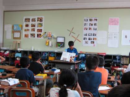 研究テーマの理由や,研究の仕方,わかったこと,感想などをみんなに伝えました。