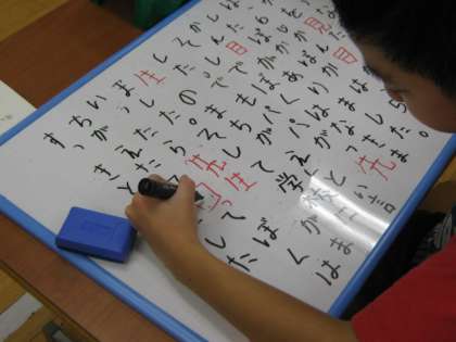 毎日日記を書いています。ホワイトボードにかいてその後,漢字やカタカナの表記をなおしてノートに書いています。毎日書いていると漢字の使い方も上手になってきました。