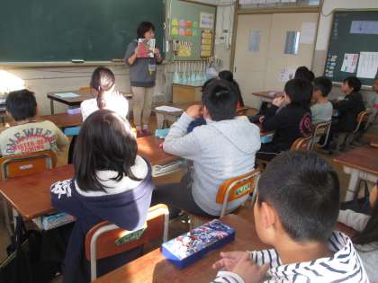 読書バザールがありました。担任の先生でなく,違うクラスの担任・担当の先生が教室に来て,読み聞かせをしてくださいます。沖縄戦の絵本や「吾輩はねこである」の絵本を読んでもらいました。普段とは違う空気で,子どもたちもお話をよく聞いていました。その後,教室に本を置いておくと,休み時間にみんなで見ていました。