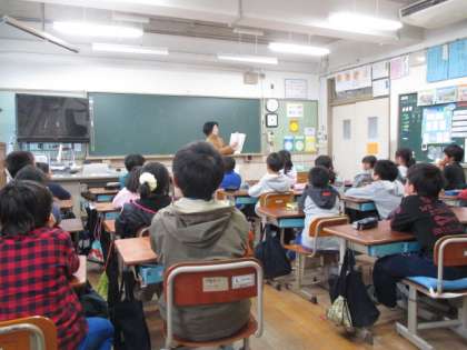 図書支援員の先生から本の紹介がありました。国語科「3年とうげ」で学習している民話・昔話をいくつか紹介してもらった後,1冊の本を読んでいただきました。本の面白さを紹介するために,たくさんの本を読んでほしいと思います。