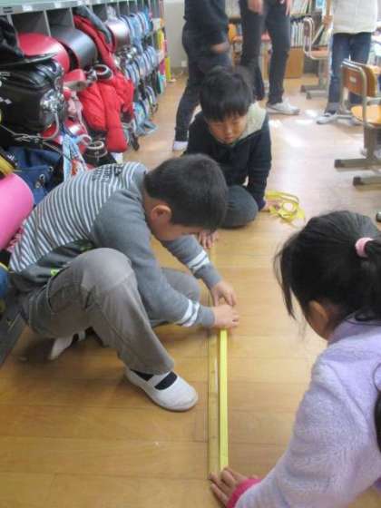 今日の算数では,自分の手を広げた時にどれだけの長さがあるか調べました。予想では様々な長さがでましたが,実際の長さを調べてびっくりしていました。100センチメートルをこえるとは思っていなかった子が多かったようです。これからの算数の学習では、100センチメートルを超える長さを学習していきます。