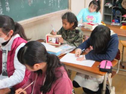 オルゴールの箱を作っています。好きな絵を描くので,子どもたちは楽しくてたまらない様子です。