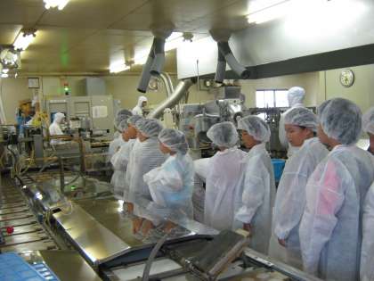 ドリームの学習では、京都の伝統産業、和菓子について調べています。和菓子についての疑問がたくさんでてきました。そこで、分からないことを教えてもらうため、また、和菓子についてより深く知るため、校区にある阿闍梨餅さんに、工場見学にうかがいました。たくさん質問に答えてくださり、ありがとうございました。