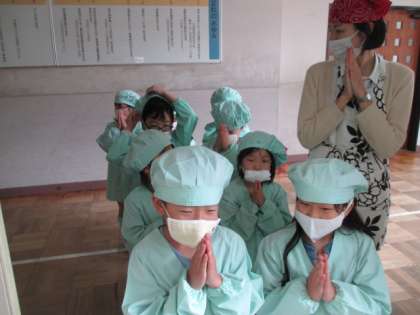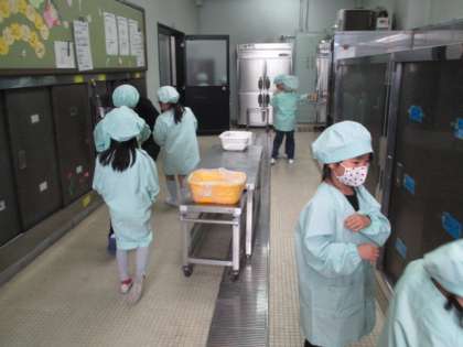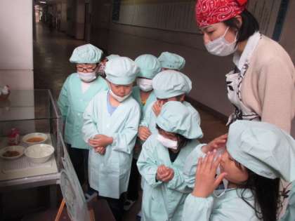 給食当番の段取りも,さすが2年生。上手に手際よく配ることができました。今日の献立を説明した看板(?)の前で,クイズを真剣に考えていました。「2年1組です。おいしい給食いただきます。」声をそろえて給食をいただきました。