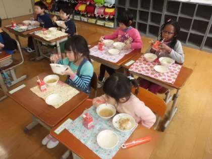 「おいしい!」「明日もたのしみ!」と和気あいあいと楽しく食べていました。