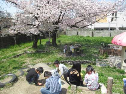 前日に自然観察の練習をして,今日は3・4時間目に運動場周りの観察をしました。たくさんの自然を見付けていました。