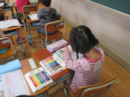 教科書を使っての学習も始まっています。先週,入学式を終えたばかりの1年生も,ひらがなや数の勉強を頑張っています。