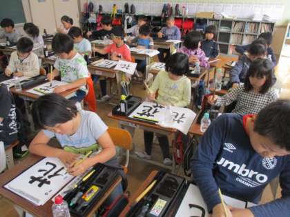 4年生になって初めての書写です。最初の課題は「花」でした。気持ちを落ち着かせて、集中して取り組んでいました。どの「花」も、真剣に学習した気持ちが伝わる「花」になりました。