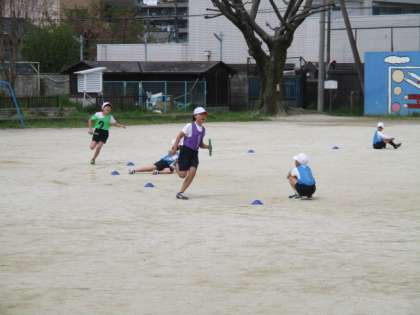 昨日に引き続き、体育の時間ではリレーをしました。今日は,チームになってリレーで対決です。相手チームに勝つだけではなく、自分たちのチームのタイムをどれだけ縮められるかが目標です。やはりバトンをもつと、みんな真剣になり、チームの協力が見られました。