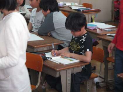 グループで音読練習をしています。役割を決めて,どのように読むのか考えながら,音読しています。きっとすてきな音読発表会になると思います。