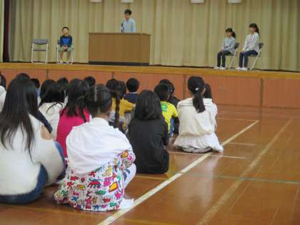 4年生以上が集まり,演説に耳を傾けます。