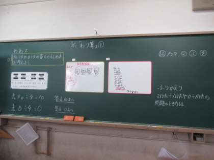 今日は,九九では求められない割り算の計算を学習しました。40÷4や0÷4などの計算のしかたを考えました。