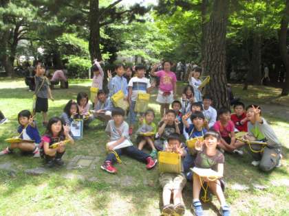 たくさんの観光客の中,何とか場所を確保しました。あとは,行列が来るのを待つのみです。