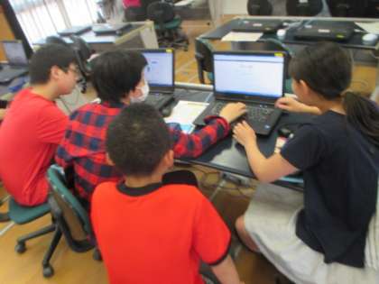 国語科で修学旅行で行った先のパンフレット作りをします。インターネットを使って施設の下調べをしています。見学のときに,より深く施設について知ることができるようにしっかり調べています。