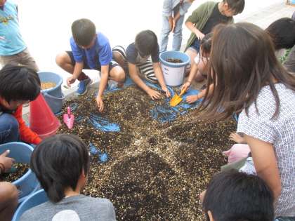 土づくりから始めたので,手も腕も泥で汚れながらの作業になりました。