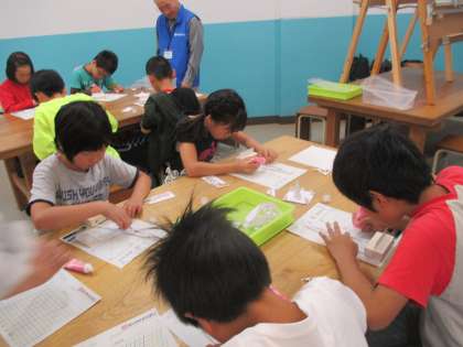 鉄塔の仕組みを使って部品を組み立てていきます。みんな集中して取り組んでいます。