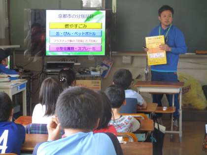 今日の社会の時間には、自分の家から出たごみがどのように処理されているのか「まち美化センター」の方に教えてもらいました。最初は教室で、いつもゴミの処理の仕方や昔のごみの処理の仕方を教えてもらいました。