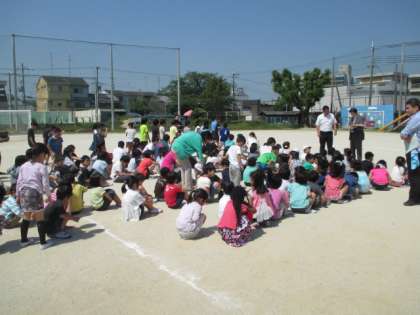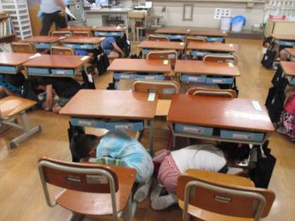 今年度初めての避難訓練が行われました。1年生にとっては,初めてのことです。緊急地震速報の音を聞いて,教室に少し緊張が走りました。1次避難はまず自分を守ることです。その後,運動場へ避難しました。