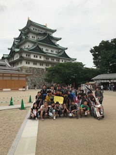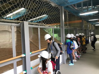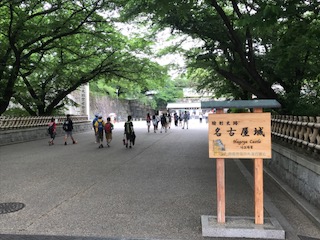 名古屋城の見学です。本丸御殿の工事現場を見学し、金の鯱鉾で有名な天守閣へ。とても立派なお城です。建物の規模の大きさに驚いている子どもたちです。