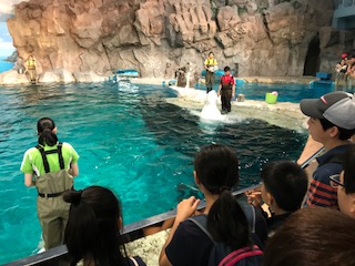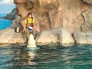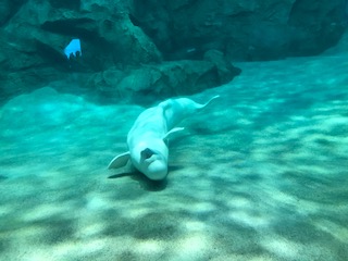 名古屋港水族館で,可愛いベルーガのトレーニングを見ることができました。