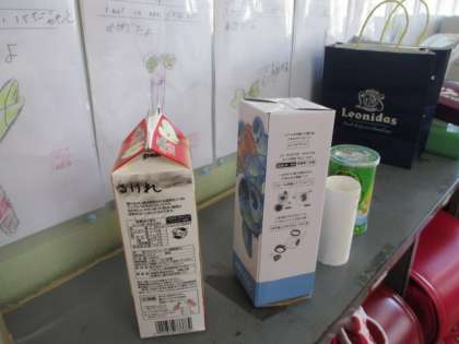 算数では,今「いろいろなかたち」で立体の学習をしています。お家で集めていただいた空き箱をもとに,形の特徴について話し合いました。「はこの形はとがったところがあるね。」「つつの形は,立てることもできるし,転がすこともできるね。」「ボールの形は蹴ったら,どんどん転がるよ。」など子どもらしいとらえ方で,それぞれの形の特徴を見つけていました。
