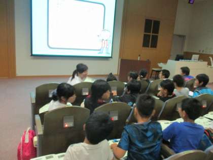 クリーンセンターに到着です。大きなホールで最初は学習をしました。クリーンセンターの様子が分かりやすく、京都市ではゴミを減らす努力をしていることが学習できました。