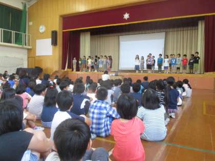 にこにこ集会がありました。今回は,2年生の発表でした。声も大きく聞き取りやすいスピードで発表してくれました。3年生も感想交流で素晴らしいところを伝えていました。
