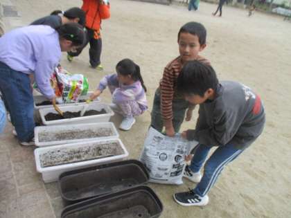 土は重たい!はずですが、協力しながら軽々と運んでいて驚きました。