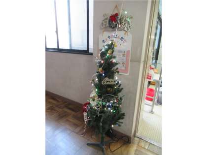 毎年恒例の給食室前がクリスマスバージョンになりました。