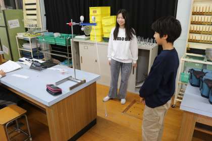 実験してみることにし、あとは子どもたちに任せました。しっかりデータをとり、入力まで完了した子どもたちは、長さにさらに差をつけてみて、1往復にかかる時間の差を明らかにしていました。