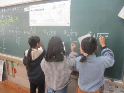 今日は、小数÷整数の筆算の計算の仕方を考えました。最近、算数の学習に自信をつけてきている子どもたちは、今日もこれまで学習したことを活かして、小数÷整数の筆算の仕方についてとても一生懸命考えていました。