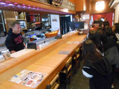 生活科の学習で、地域にあるお寿司屋さんへインタビューに行きました。子どもたちは「近くに海がないのに、魚はどこからとってきているんだろう」「なんでお寿司屋さんを始めたんだろう」と気になったことをたくさん質問していました。魚のさばき方やお出汁についても学ぶことができ、子どもたちは大喜びでした。お店の方の温かさも感じたようです。