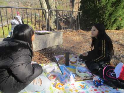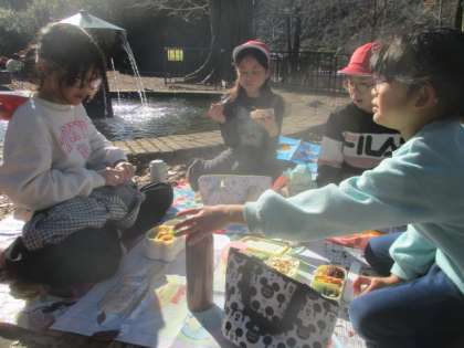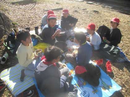 疏水記念館で学びを深めた後は、公園で楽しみにしていたお弁当。朝の9時半ごろから『お腹がすきました。』『お弁当まだですか。』を連発していた子どもたちにとって、待ちに待ったお弁当の時間がやってきました。12月とは思えないほどの温かい気候のもと、気持ちよさそうに、そして美味しそうにお弁当を食べていました。