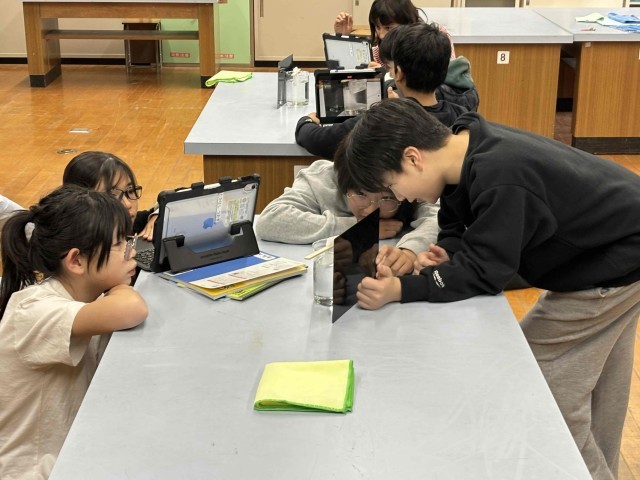 いろいろ出てきました。面白いですね。その中でも今回の「とける」が何なのかということを考えながら、ある実験をしました。水にあるものが入ったティーバックをつけるだけの簡単な実験です。みんなで同時に水につけてみると、あることが起こりました。子どもたちからは歓声が起こるかと思いきや、全員一言も話さずにひたすら観察をしていました。それほど面白かったのでしょう。あるものの正体は塩であり、その現象の正体はシュレーリン現象です。初見ではないかもしれませんが、こうしてじっくり観察するのは初めてだったようで、しばらくして金縛りがとけたかのようにテンション高く話し合っていました。