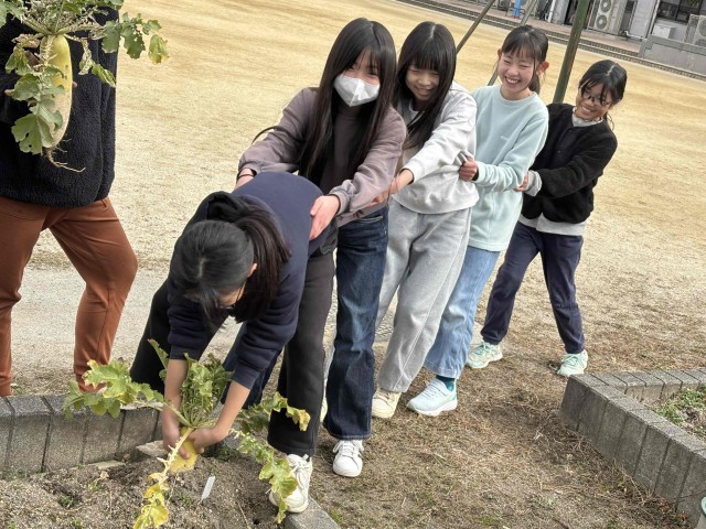 かぶではなく大根です。抜かずに残しておいた大根をようやく収穫しました。家庭科で使うためです。また京果の方にもお越しいただき温かい関わりをいただきました。感謝の気持ちしかありません。