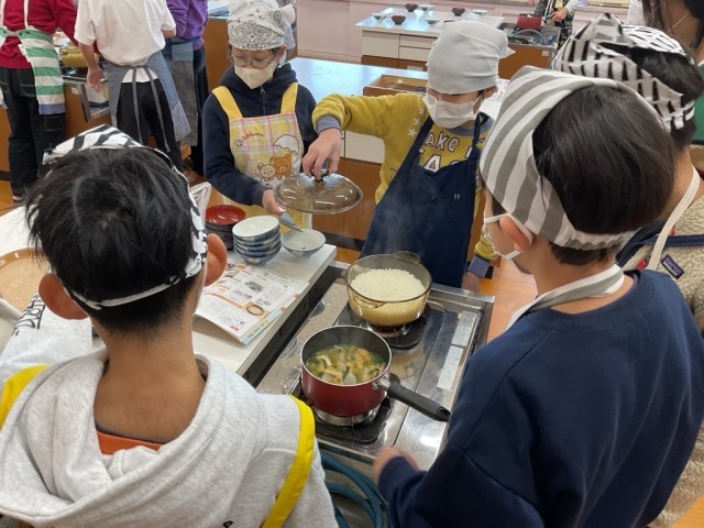 ちなみに今回は、お味噌汁作りと、ご飯をたくことに挑戦しました。前回だしの授業の時にも調理はしたことがあるので、以前よりもさらに協力して、要領良く動く子どもたち。さすがです。